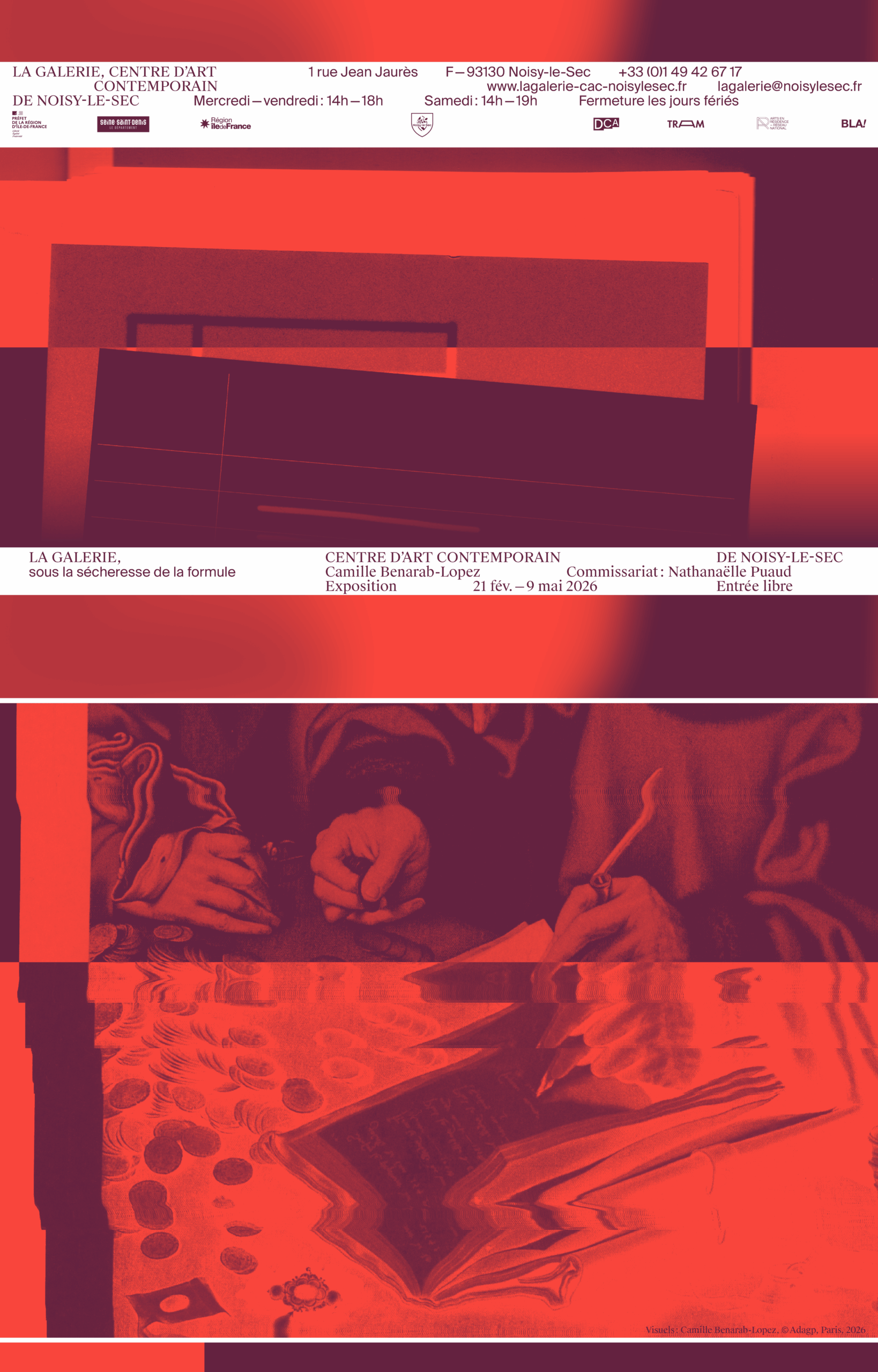 La Galerie est fermée pendant la période inter-exposition. Toute l’équipe vous donne RDV le 20 février pour le vernissage de l’exposition « sous la sécheresse de la formule » de Camille Benarab-Lopez